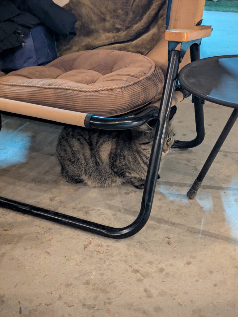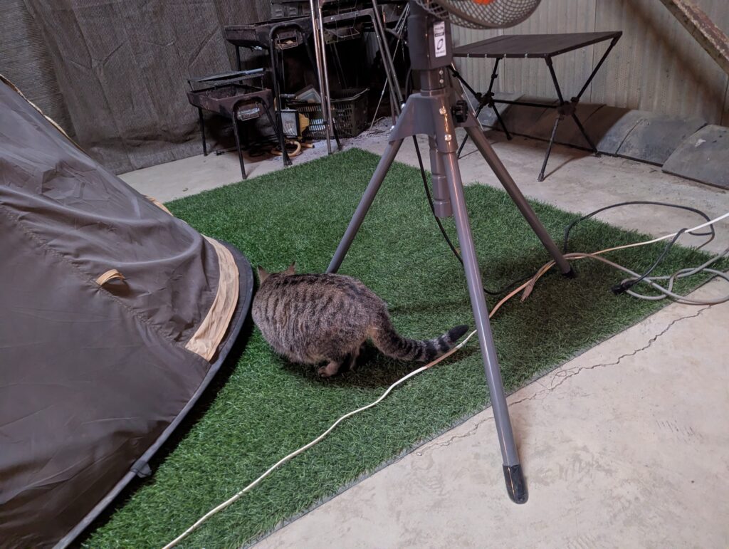 ポップコーン食ってのんびりしてたらそこへ野良猫が乱入してきてました。