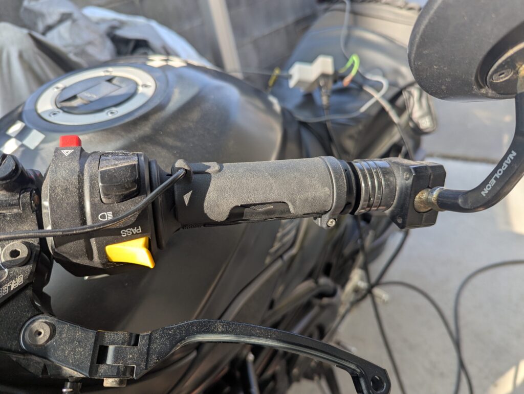使いたいけど、取り付けは少々面倒だし、うちの場合スロットルを交換している関係も有ってグリップごと変えるのもなぁというのも有って電熱グローブだけで乗り切っていたんですが。
