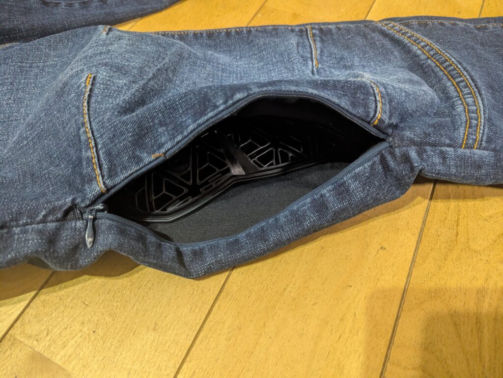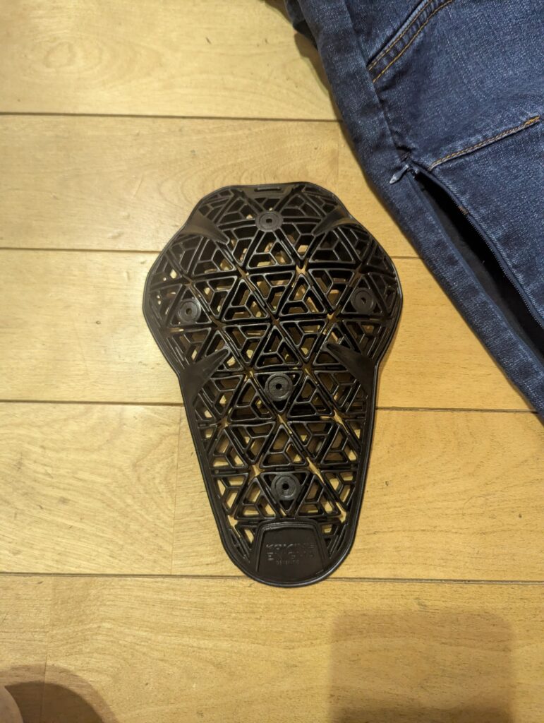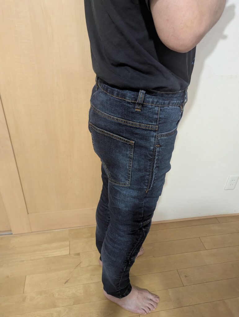 ただ、以前のコミネのジーンズもそうでしたが、ひざから下がタイトでスキニーかよ!ってくらいなのでそこが好みが分かれそうですね、ストレッチは効くので窮屈ではないですがバックステップで乗っていると膝の血流が少し悪くなる感じは有るんで長時間乗っていると足にくる可能性は有ります。